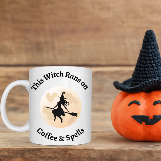 Coffee & Spells 11 oz. White Ceramic Mug – Magic in Every Sip